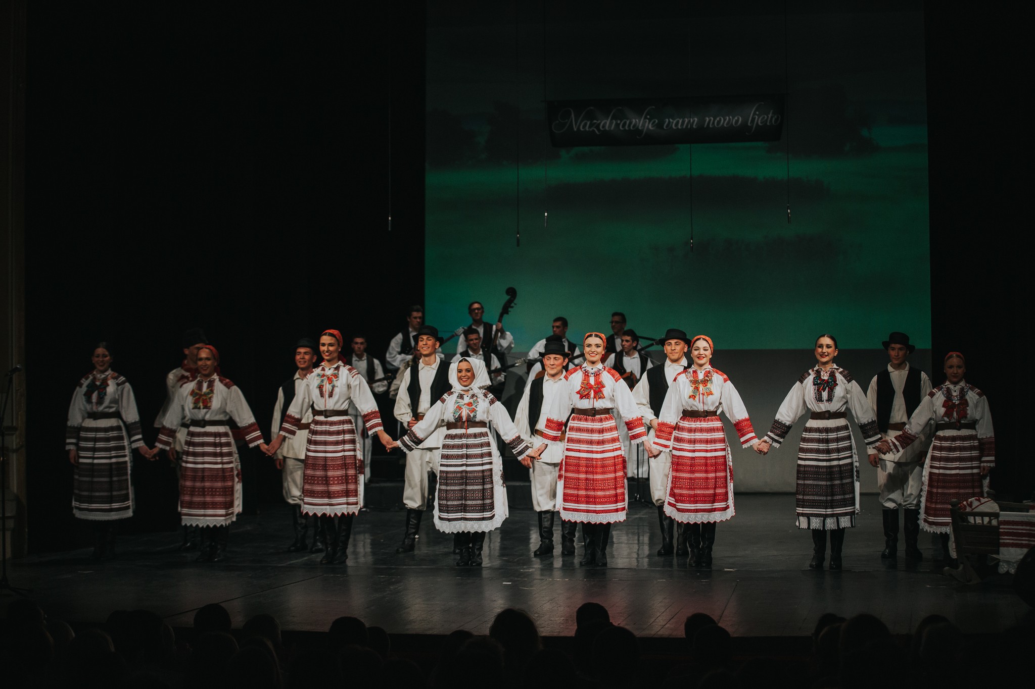 Narodna nošnja može sadržavati i preko deset različitih dijelova, a uglavnom se sastoji od bluze/košulje, suknje/hlača, marame, pregače, nakita, oglavlja, čarapa, obuće, tkanice te svega što čini vanjski izgled nošnje. Kako bi narodna nošnja bila potpuna, ispod nje je potrebno obući i po nekoliko podsuknji čiji broj ovisi o samoj nošnji, odnosno kraju kojega ta nošnja predstavlja. Tijekom jednog koncerta plesač mora u roku od desatak minuta skinuti staru i odijenuti novu nošnju kako bi bio spreman za slejdeću točku te tu radnju mora ponoviti i po nekoliko puta tijekom večeri.
